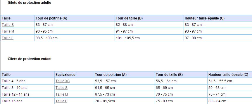 | Dire merci | Perso j'ai pris un gilet taille 16 ans chez Décath et il me va pile poil comme il faut (je fait 1m70 pour 60 kgs et petite poitrine) |