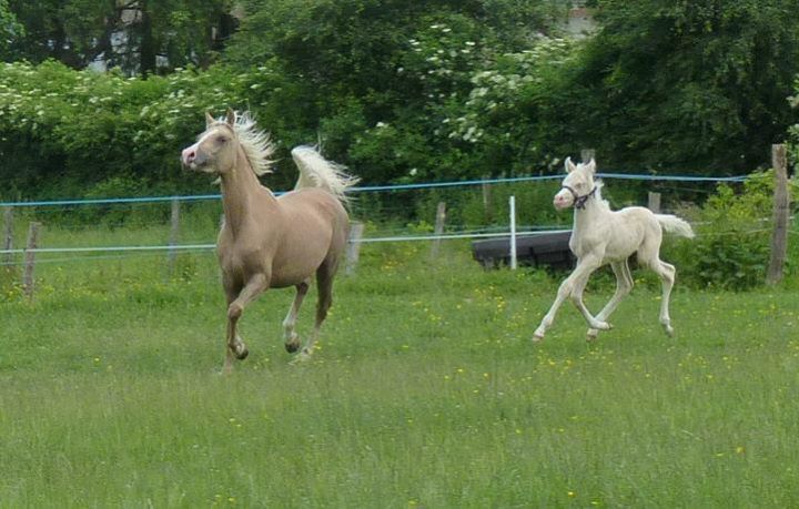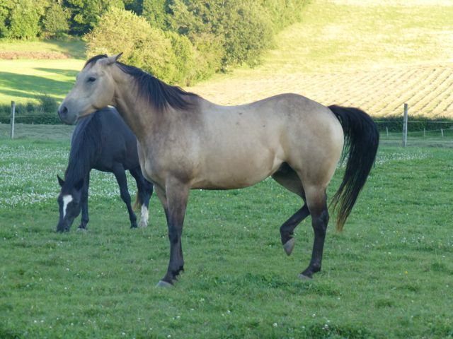 | Dire merci | Elle est a l'herbe d'avril à octobre, sinon foin de bonne qualité le reste du temps, à volonté, un complément en fin d'hiver si elle perd de l'état. Et c'est vrai qu'elle fait très poulain C'est une Paint horse PP La mère a eu une croissance normale question taille mais elle sait élargie vers 6-7 ans. Le père a atteint sa taille vers 4 ans mais a été longtemps, comment dire? mou, aucun tonus, si on se mettait en selle on sentait le dos descendre, les membres plier. On a commencer à le monter à 7 ans seulement à cause de ça Double cuisse??? Sa large mère ![]() Son père ![]() |