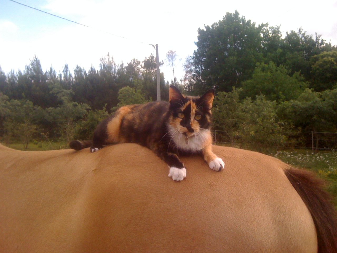 Déconnecté | chats et chevaux s'apprivoisent mutuellement! Les chiens sont plus compliqués, car ils "agressent" les chevaux: aboient, tournent autour, les provoquent...alors que les chats s'en tapent des chevaux, ils ne les chassent pas, ne les provoquent pas... A part les chatons qui eux ne font pas gaffe (ne savent pas et les chats apprivoisés qui n'ont pas peur et prennent des risques) et risquent de se faire marcher dessus, je n'ai jamais vu de soucis. |