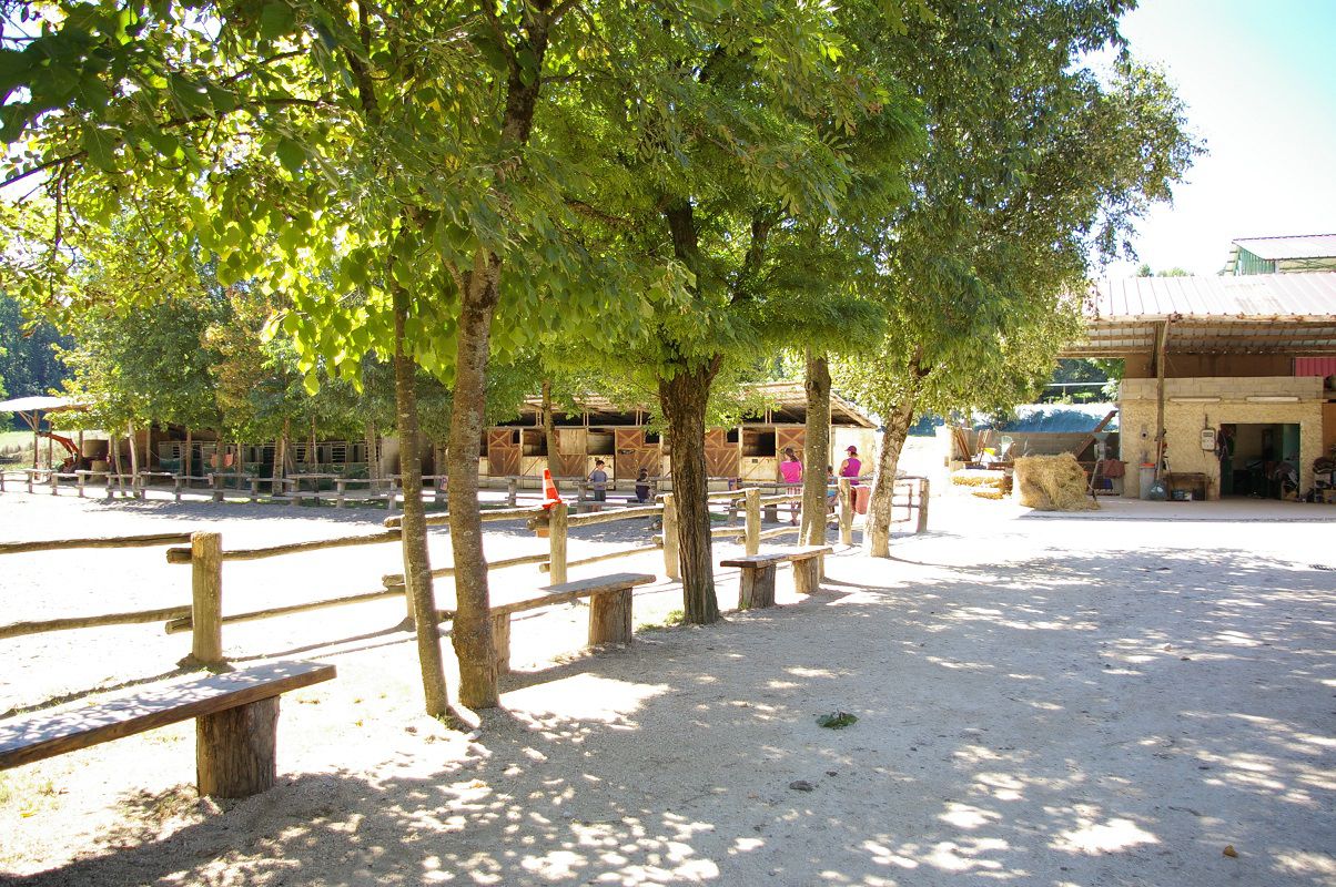 | Dire merci | Par contre, pas évident de choisir une photo des installations. Sachant qu'il y a donc comme je disais plus haut une grand manège : ![]() Une carrière d'obstacle (là on en voit une partie, et dans l'arrière plan, le grand manège et sa carrière attenante) : ![]() Une autre carrière, ombragée, au cœur du centre équestre, avec des bancs autour : ![]() ou d'un autre angle de vue : ![]() |