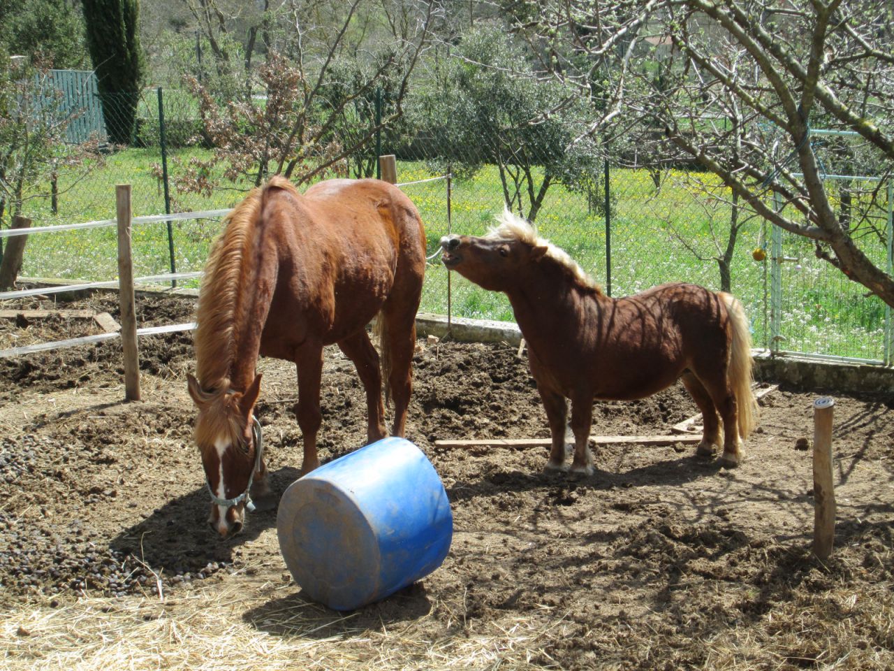 | Dire merci | J'ai un cheval "neuneu" qui par moments a tendance a jouer les "sales gosses" envers nous... Alors j'ouvre son parc a mon shet' couillus qui se fait un plaisir a lui redonner les bonnes manières.Le shet' rentre chez-lui quand il veut,mais adore pérsecuter son copain le gros bourru...Il l'a a l'usure! Du coup mon neuneu attends pour manger,attends pour boire...supporte tout...obeis au doigt et a l'oeil après un séjour avec son pote le shet ![]() ![]() Pourtant,la difference de taille ferait penser que ce n'est pas le shet' le chef! ![]() |