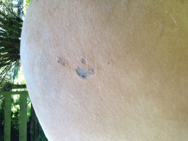 | Dire merci | chachou!!pour ma part c'est plaque séche en rond et poudreuse mais pas à vif comme chez ton cheval et ça les démange un peu celle que j'ai eu sur le ventre des cercles vifs mais juste le cercle pas au centre et ça gratouillait vivement |