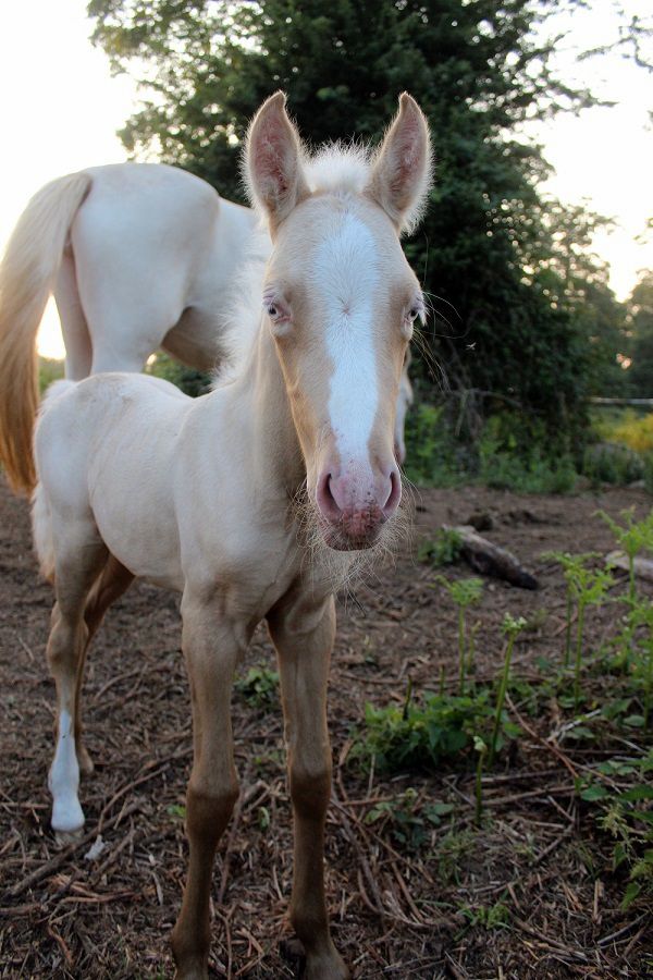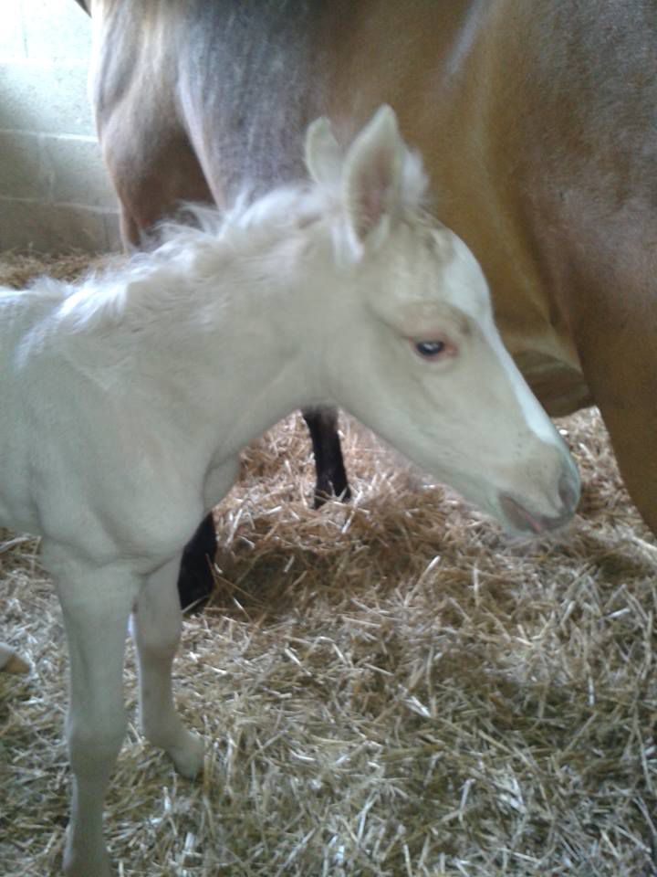 | Dire merci | Le poulain de la photo de kyaa n'est pas champagne, il n'est juste pas encore sec (vient de naitre) mais la pouliche est crème effectivement. Je ne suis pas convaincu par cette histoire de muqueuses non plus... Mais par contre on voit bien au niveau des membres et autours des yeux les poulains qui vont grisonner. |