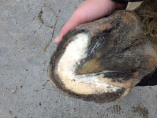 | Dire merci | C'est vrai que j'ai mis les photos en petit... Sur la photo j'ai gratté du blanc, le sabot s'effrite de blanc et ça creuse la sole. Je n'ai pas encore tenté la javel. A chaque fois que je vais le voir, il y a du blanc à gratter, ça se reforme rapidement. Je vais donc tenter le tea tree du coup, c'est ma dernière chance. Je reposte les photos en plus grand. Le parage a juste raccourci le pied et arrondi la forme du pied, ça n'a rien donné sur la sole. |