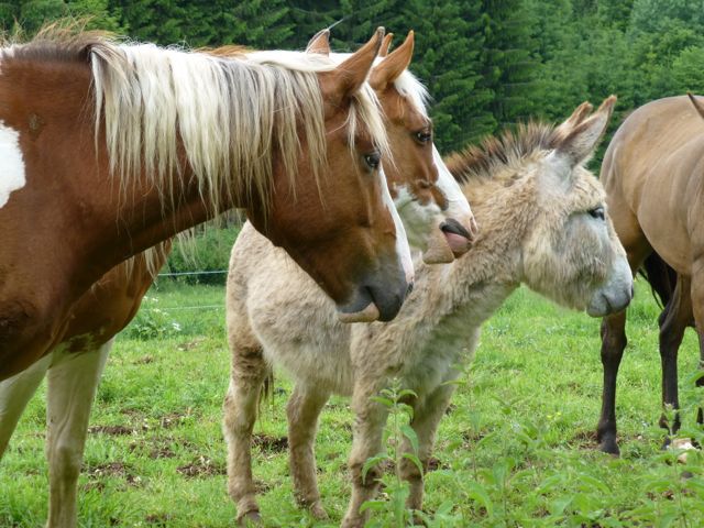 | Dire merci | Voici Tom, grand copain de Chinook (en deuxième plan) ne braie pas plus qu'un cheval n'hennit, adore accompagner les chevaux en balade, (il suit sans problème, même au galop) est la tête pensante du troupeau [url=https://www.1cheval.com/membre/services/photos/images/169960.jpg] ![]() Sans hésiter un âne est un bon compagnon pour un cheval, il aura même un petit côté éducateur parce qu'un âne est plus réfléchi qu'un cheval |