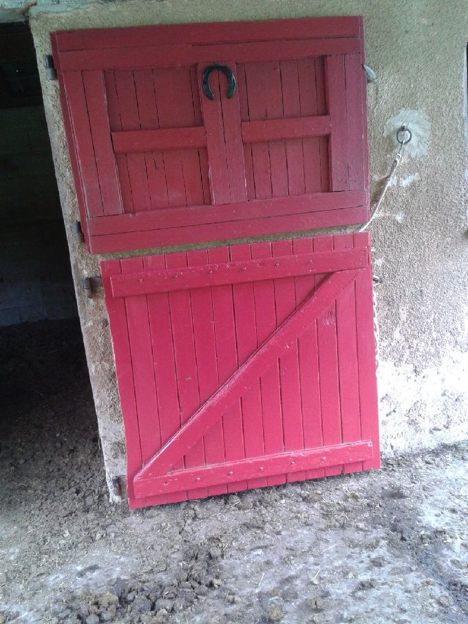 | Dire merci | Avis aux bricolos, j'ai besoin de trouver deux portes de box massives, une pour l'entrée de mon abri ( il y en a déjà une mais complétement rongée, je pense foutue du coup) et une pour l'accès au paddock (on rentre par une petite porte ds l'écurie qui donne accès au paddock... Bref il me faut du haut /robuste mais je panique un peu en voyant les prix... est ce possible de fabriquer par vous même ? Quelqu'un à déjà fait, quel bois prendre ? quel technique ? A vous |