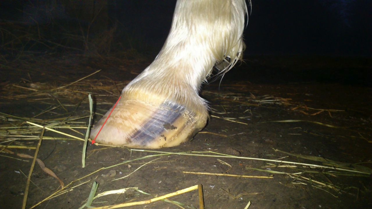 | Dire merci | si tu trouves que c'est usé en pince, est-ce du fait de la zone entourée en rouge ?![]() si c'est le cas, c'est justement parce que le pied est trop long, que la jument use cette partie en marchant |