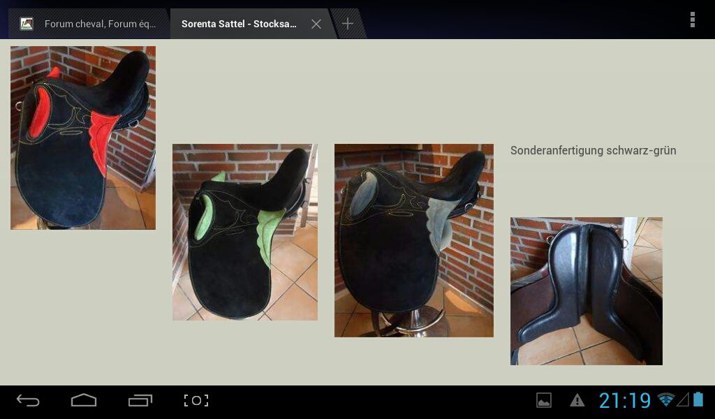 | Dire merci | Chez sorenta-sattel.de Ils ont aussi des selles classiques, de dressage, d'endurance, espagnole. Les prix n'augmentent pas quelques soient la ou les couleurs demandées ainsi que les modifications. Les tailles vont de 14 à 19. |
