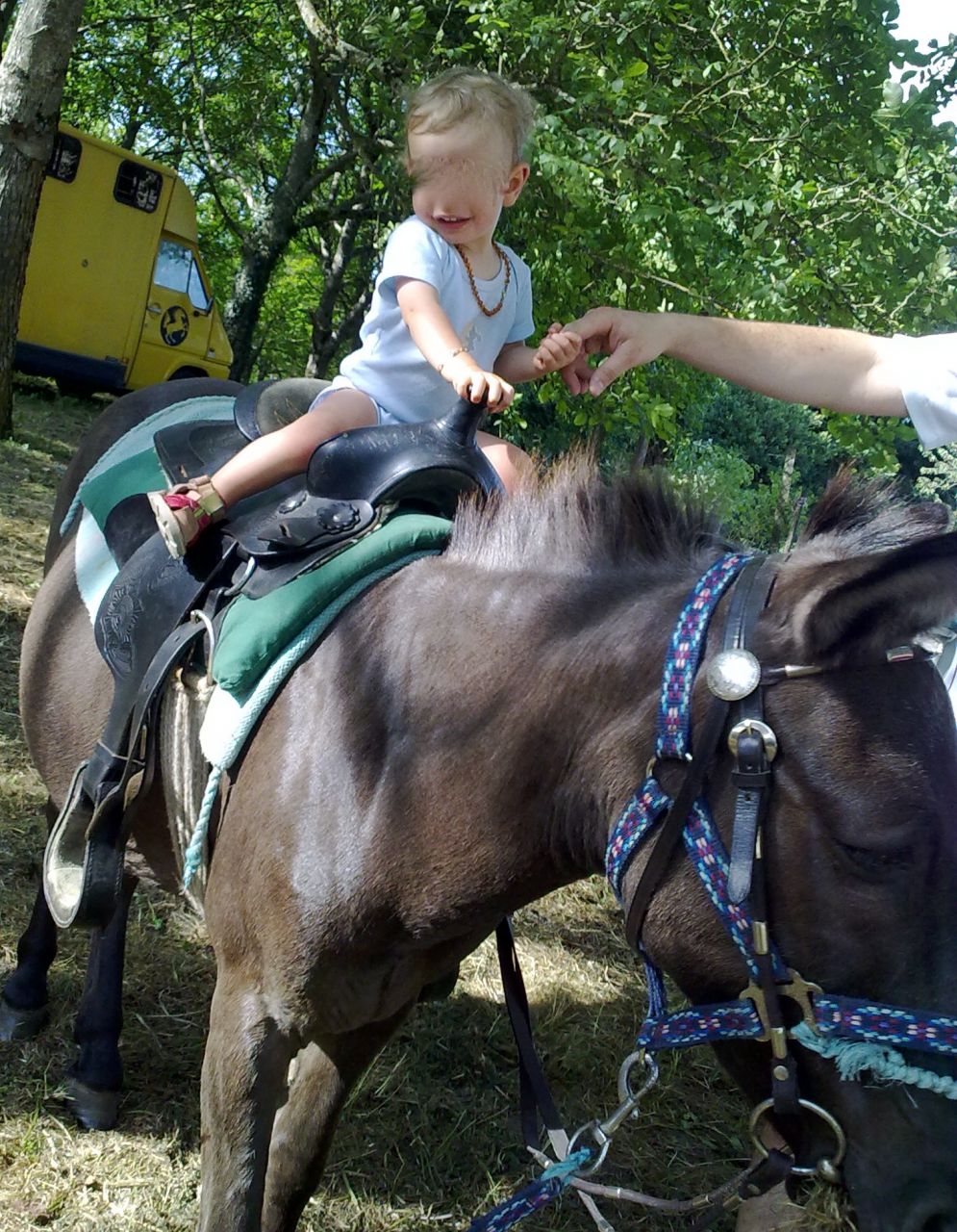 | Dire merci | De plus, si tu emmènes tes enfants avec toi quand tu vas t'occuper de poulichon, ils le connaitront comme toi et c'est super ! J'ai mes chevaux sous mes fenêtres et en général quand je m'occupe de mes chevaux j'ai ma fille dans les pattes .... C est elle qui gère Coffee. C'est le 1 er poulain qu'elle a vu naitre. Ils apprennent ensemble. C'est sur qu'avec Coffee je ne prends pas de risques j'ai rarement vu un poulain aussi mou ... Le sang arabe est seulement présent sur ses papiers |