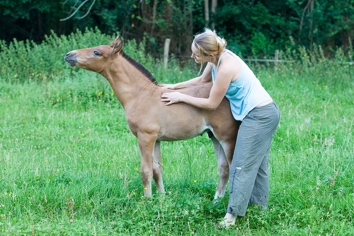 | Dire merci | ben tu gratouilles de force alors, donc autant ne pas gratouiller. Le poulain que j'ai mis en photo, au moment des gratouilles, il n'était pas licolable, à peine approchable.... |