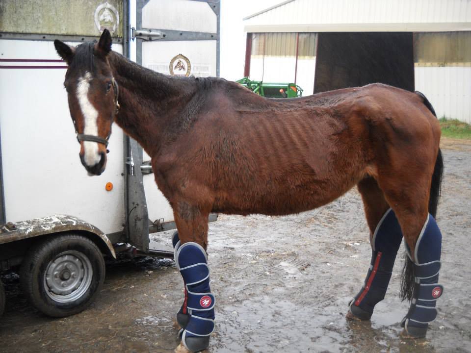 | Dire merci | Le cheval n'a pas maigri, il a juste un moche poil d'hiver et donc l'air moins "bien". Si il a des difficultés à grossir, avant de définir ce qu'on va donner, je ferais une prise de sang. Ca ne sert à rien de donner "tout et n'importe quoi" si il a un problème de santé. Vérifier les dents, bien sûr. Donner du foin, des graines germées, de l'huile,... Ce sont des pistes, mais à explorer après PDS. |