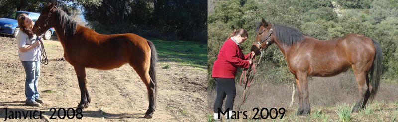| Dire merci | Je sais pas si très parlant mais j'ai ça avec ma jument : Musclée (et non grasse fait rarissime ), septembre 2009 : ![]() Mai 2010, après déprime et moins d'activité, un peu maigre et démusclée : ![]() |