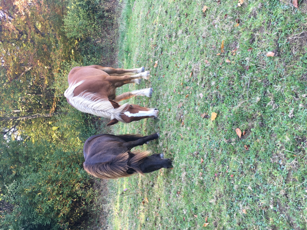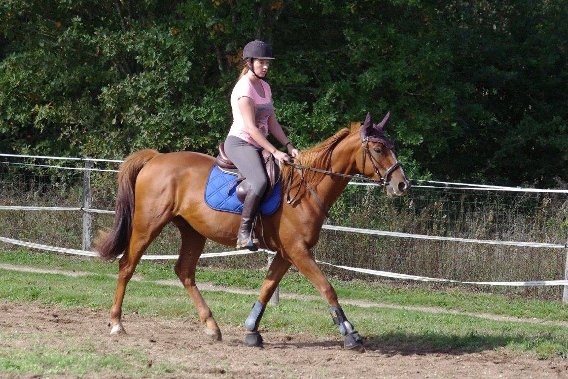 | Dire merci | de mon cote ma E a ete "debourree" l'ete dernier puis laissée en champ tout l'hiver. hier je l'ai remontée, c'etait la 2e fois qu'elle avait le mors, et la 1ere fois ou elle etait seule en manege (les autres fois il y avait toujours un autre poney). on a la direction, l’arrêt et le trot a la voix. elle n'a pas assez d'equilibre pour galopper en manege pour le moment. je souhaite en faire une bonne jument d’extérieur, alors mon idée serait de l'emmener en juillet lors de nos 2 jours annuels de rando en foret de broceliande. je me dis que accompagnée par nos autre chevaux, elle découvrira le monde un peu "de force", mais que si ca se passe bien ca serait une bonne étape de passée. |