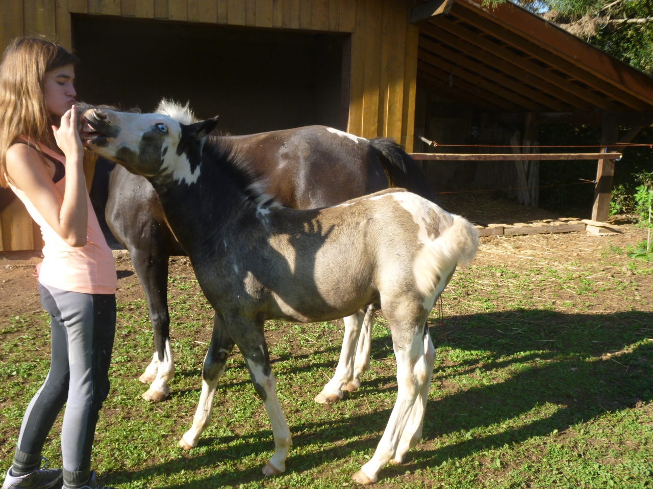 | Dire merci | voila notre petite Eden! alors licol ok, marche en longe ok, en direction opposé a maman ok, donne les pieds ok ![]() ![]() |