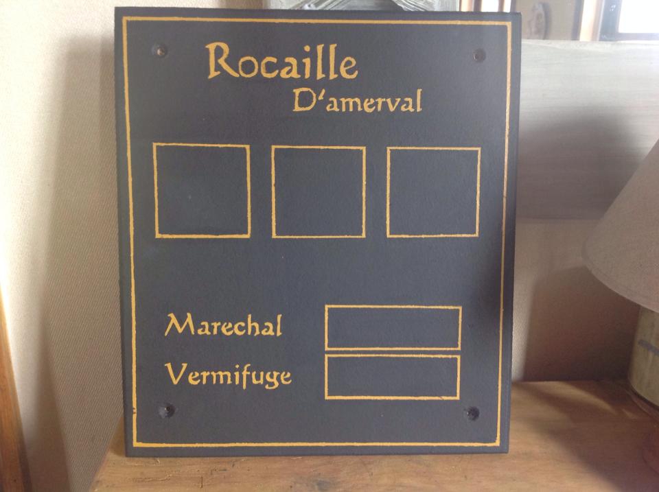 | Dire merci | Elle est sympa ta plaque RocailleT Ou as tu trouve l'ardoise ? Au depart je voulais m'en faire faire une en bois, et finalement je trouve ca trop classique, je veux un peu de modernite ! Donc finalement j'ai "dessine" mes plaques sur logiciel, et je les ai donne a faire faire. Elles seront dorees ou noir glossy (pas encore choisi, mais peut etre les noires). Avec le nom de mes chevaux, et mon nom de famille. |