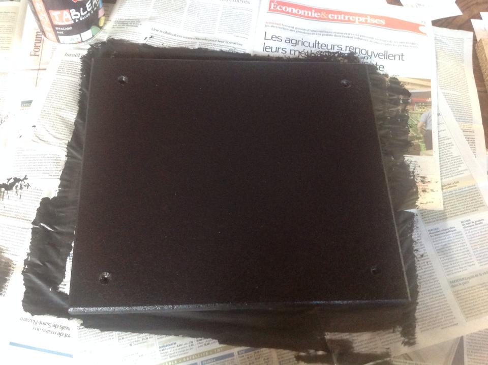 Déconnecté | Merci c 'est de la peinture ardoise que j'ai acheté au brico.J'avoue que c 'est classique mais ça ma juste coûté le prix de la peinture ( 10 euros ) et au moins ça m'a occupé les jours de pluies ^^ Enfin en tous cas je conseil les cases "maréchal et vermifuge " c 'est bien pratiq ue ! |