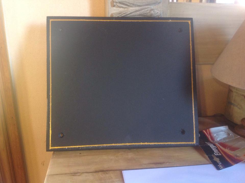 | Dire merci | sinon pour l'ardoise, tu as la peinture ardoise, mais aucune idée de comment ça tient dehors.. (et prévoir un paquet de couches) Ou les "bêtes" ardoises d'école... |