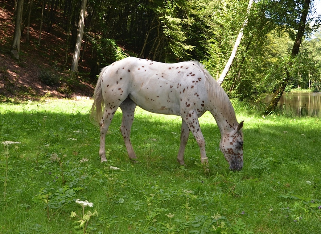 | Dire merci | ![]() Appaloosa blanche sans sang QH. |