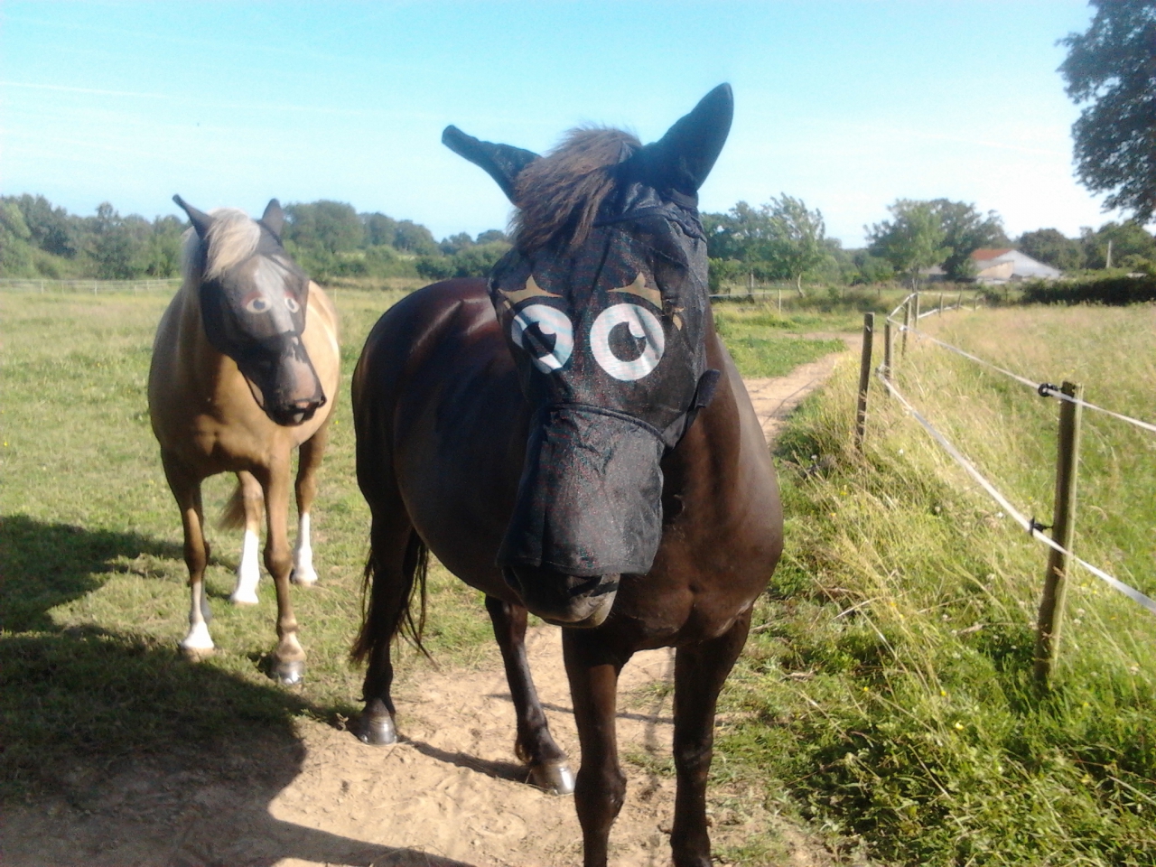 | Dire merci | Pour ma part , je remarque que les moucherons sont gênant pour elle, pas vers ses yeux mais quand ils viennent vers son nez, je penses aux allergies également, un cheval qui expulse ce qu'il à dans le nez, à le nez qui coule, c'est l'équivalent d'un allergique en mode cheval Grace à son all weather aujourd'hui balade en foret sans secouement de tete, et petit travail en carrière sans soucis elle avait le nez qui coulait un peu après la longe mais sinon aucun soucis ! l'année dernière je ne savais pas quoi pensé, je la trouvais : sensible aux mouches, au soleil... mais au final les masques intégrales avec anti uv , une couverture anti mouche ... rien ne l'a aidé ! je n'aurais jamais cru que le all weather l'aurait calmé ! à partir de la elle à arrêté d'être "cloitré" dans son abris quand il y avait du soleil |