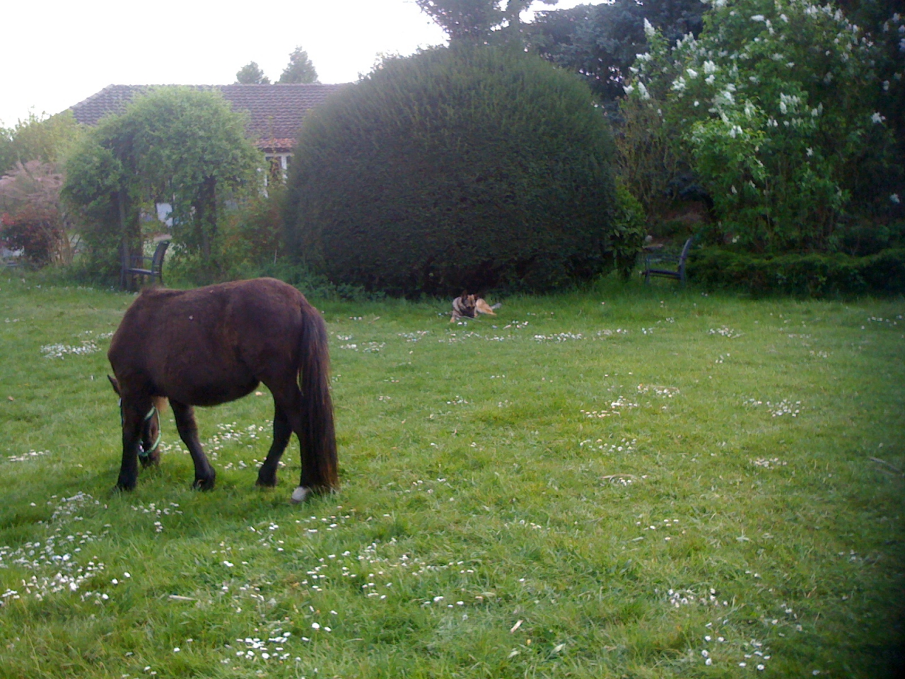 | Dire merci | Des problèmes dus à la crise se sont insérés inopinément dans ma vie, je vais être obligée de me séparer de mon pottok. Pensez-vous que 200 Euros soient raisonnables ? Il était sauvage, 18 mois, tout juste sortis des montagnes, qui n'avais jamais côtoyé l'homme. En deux mois, il est devenu aussi docile qu'un chien, ne mord pas, ne tape pas, suit quand on l'appelle, se laisse prendre les pieds, obéit aux ordres, sort en main (licol) dans les rues du quartier, ne craint pas les camions, les scooters. Dommage, je voulais le garder pensant l'utiliser pour porter le bât et traverser les villages pour me rendre du côté de mon fils (Nantes). Pensez-vous que quelqu'un dans l'Aube pourrait en prendre soin ? Merci pour vos conseils. I |