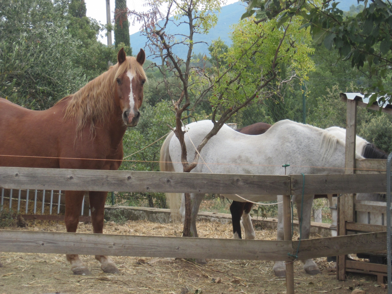 | Dire merci | Bonjour, Je me tourne vers les ingénieux du forum, ceux qui nous sortent des idées de ouf marouf pour toutes les situations... Voilà, je pars un mois en Inde, et suite à un changement de programme de dernière minute concernant mes plans pour l'année prochaine, ma jument n'ira pas dans la pension que je voulais pour cet été, lors de mon absence et restera dans sa pension actuelle. Normalement, elle est au pré H24 et on se relais avec des copines pour la nourrir une fois par jour. Sauf que (ce serait trop simple!) elle s'est blessée donc a besoin d'être en paddock. Une amie de la pension me propose de mettre ma jument avec son hongre en abris paddock, afin qu'ils soient deux et qu'elle ne soit pas seule pendant un mois, qu'elle ait accès à l'abris, foin à volonté et nourris 2X/jours. L'idéal (comparé au boxe paddock ou elle aura bcp moins de foin et ce sera + cher, où elle sera enfermée la journée, toute seule en paddock, etcetc). LE PROBLEME? Comment gerez vous la distribution de la bouffe (granulés) quand vous avez deux chevaux ensembles? Normalement, les gerants donnent matin et soir, ce qui est top. Sauf que là, ça risque de faire des histoires, quand l'un mange + vite que l'autre... Ma jument mange 6X plus que son hongre... On a pensé à plusieurs solutions: 1) Les gérants nourrissent les deux en meme temps, aux deux extremités du paddock, en mettant la meme quantité aux deux (mais l'alimentation est différente). Sachant que ma jument mange lentement, elle va se faire pigeonner, à moins qu'elle soit la dominante mais c'est pas dit, et pas envie que ça se castagne mais à tester... Et quand la proprio vient s'occuper de son cheval (tous les jours), elle remet une ration à Avane, avec la dose manquante. 2) La propriétaire nourrit le matin les deux séparement et je mobilise des copines chaque jours pour qu'elles viennent les nourrir le soir 3) Séparer les deux chevaux pendant les repas en en mettant un dans un petit paddock... Mais ça m'étonnerait que les gerants soient OK pour le faire... Ca fait faire rentrer le cheval, aller le libérer 15min plus tard 2X/jours. Moué... 4) Ma jument étant + petite que le hongre, mettre en place un paddock a fils hauts où elle seule pourrait passer en dessous pour manger en paix et ressortir à sa guise. Ca se fait ça vous pensez??? D'autres solutions???? Merci!!!! |