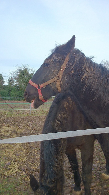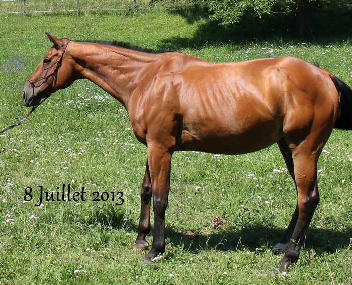 | Dire merci | Mon poulain hiver 2013, avec poils sale, gros ventre et fesses plus que haute que le garrot![]() Maintenant il n'est plus si moche. |