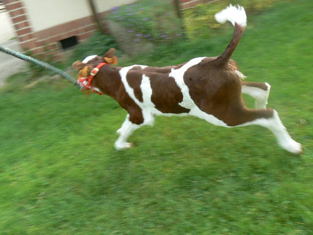 | Dire merci | dominique sans souci ![]() elle est née un hiver où je cherchais le foin du poney, à l'arrière de l'étable. Elle était en "box" et du coup quasi tous les soirs je lui remettais son seau dans le support car la coquine le faisait valser à chaque fois (vide mais elle était contente de le revoir quand mm )du coup mm mélangée avec les autres petits veaux au bout de la ligne de cornadis elle était bcp moins farouche. Et puis comme au printemps été je ne cherche pas de foin normalement je l'ai revu à un an seulement et la miss s'est précipitée au cornadis quand elle m'a entendue elle pousse même les copines pour prende la place la plus proche bon elle est quand mm un peu brutus hein mais tellement sympathique je vais voir ton forum, j'ai un ami qui dresse des vaches (ainsi que chats, colombes...) et il dit aussi qu'elles apprennent bcp plus vite que les chevaux |