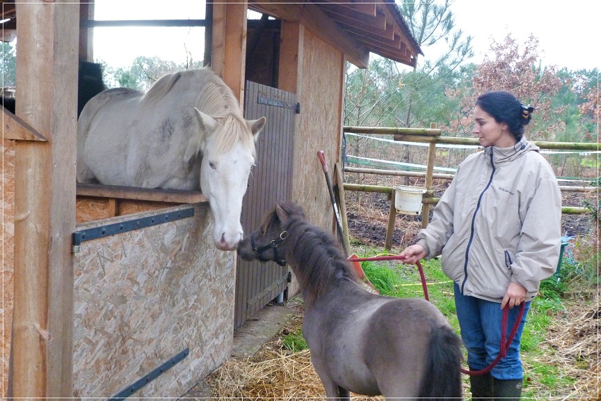 | Dire merci | L'idéal je trouve est de mettre l'abri sur un côté du pré, soit tu mets un ratelier sous l'abri que tu peux recharger en foin depuis le chemin, soit tu ne donnes pas de foin et ça te permet d'avoir un sas au sec pour sortir ton cheval. Chez moi ça donne ça: ![]() La première porte permet de mettre le foin dans le ratelier, la deuxième permet de rentrer dans le pré en passant par l'abri. |