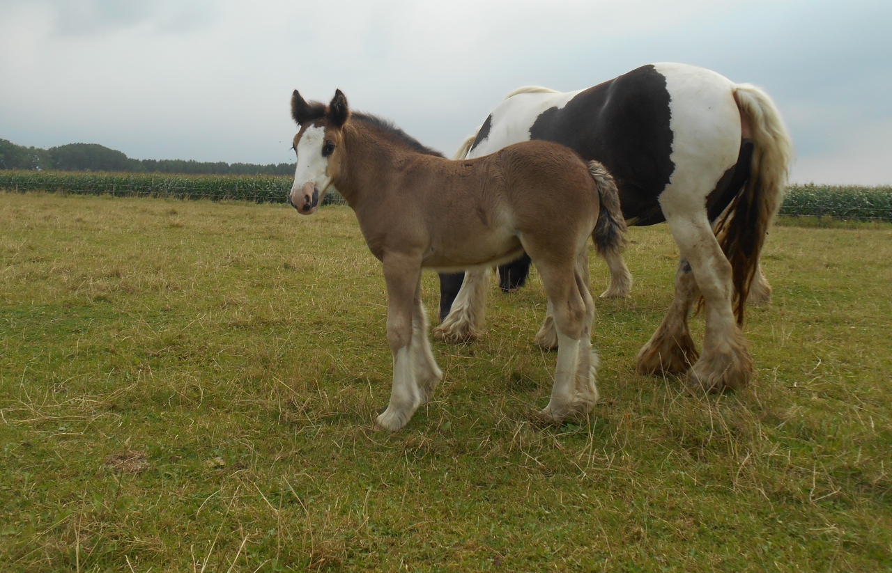 | Dire merci | Elle sera noire en effet, les bébés irish cob naissent rarement noirs, souvent gris ou bais et passent noirs à la première mue. Elle semble bien costaud et compacte en tout cas! Pour le prix elle est dans la fourchette, c'est difficile à dire car si tu vas sur le site du Domaine du Vallon (ma référence) tu as tous les prix pour les poulains, de 1500€ à 4500! Une femelle sera toujours plus chère qu'un mâle, par contre en robe unie ça décote un peu, donc 2000 me paraît un prix acceptable... |