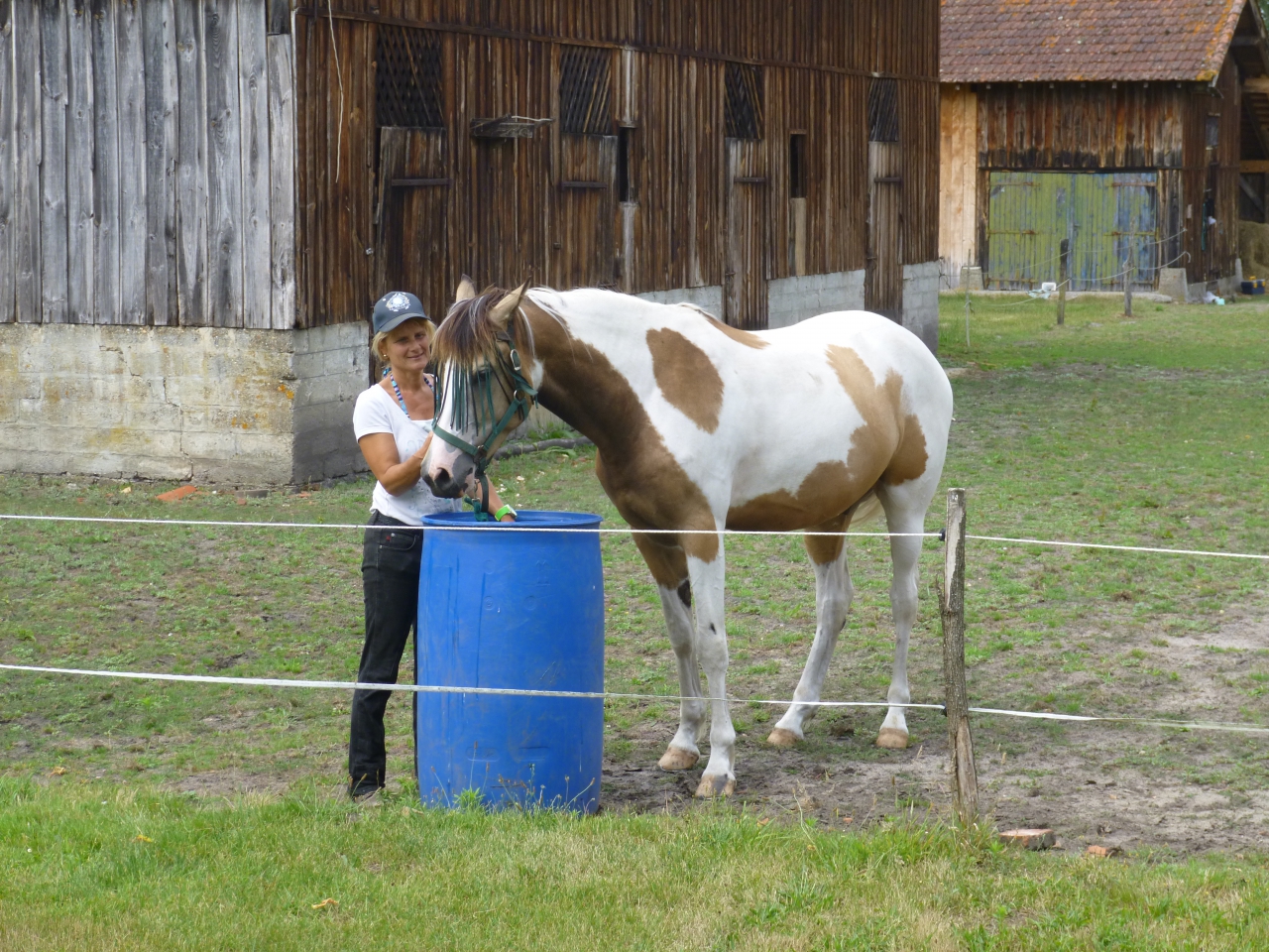 | Dire merci | J ai une jument en pré retraite et une pouliche d un an. Je continue de monter ma jument le weekend. J ai tout de suite habitue la pouliche a rester seule, dans un petit paddock donnant sur son box ouvert. Impossible qu elle ne s échappe du paddock du coup elle n était pas ravie mais ne pouvait pas tenter la fuite non plus. A force elle a su patienter, biensur ça râle quand je pars mais quand je reviens elle est toute sèche donc je suppose qu elle finit par prendre son mal en patience. Au près je ne le fais que dans un près entouré d une cloture en dur ou grillagée ... Chez moi le pré est clôturer en élec plus cloture naturelle, par sécurité je pense qu elle retournera au paddock quand je partirais. |