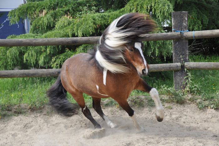 | Dire merci | Voilà un sujet entièrement consacré au cheval islandais. Le cheval islandais est le descendant direct des montures Vikings. En effet, depuis plus de 1000 ans, toute importation d’équidés en Islande a été interdite pour préserver la santé des chevaux de l’île. Un cheval qui quitte le territoire islandais ne pourra donc jamais y revenir. Au fil des siècles la sélection naturelle ne conservera que les individus les plus rustiques : se contentant de peu et aux pieds sûrs ! C’est un cheval au sang froid : un caractère posé, généreux mais énergique. On dit de lui qu’il est le feu sous la glace. Il ne dépasse rarement plus des 1m40 et pourtant, il a tout du cheval (sauf la taille ;p) ! Une de ses particularités est de posséder jusqu’à deux allures de plus que les autres chevaux : le tölt et l’amble volant. Le tölt est une allure naturelle marchée à quatre temps égaux. C’est une allure confortable et rapide dont la vitesse peut atteindre 40 km/h, et où le cheval a toujours au moins un pied au sol. L’amble volant (ou de course) est une allure latérale à 4 temps, dont un en suspension. Celle-ci est très rapide et peut atteindre la vitesse d’un galop de course sur de faible distance. Il ne faut pas confondre l’amble volant avec l’amble de voyage (ou « de cochon ») qui est considérée chez le cheval islandais comme une allure défectueuse et est écartée de la sélection. C’est une allure latérale sautée à deux temps beaucoup moins rapide. Quelques chevaux islandais en Islande : ![]() ![]() Et en France ![]() ![]() Je vous laisse continuer ce sujet avec vos photos, vos expériences, la présentation de vos chevaux si vous en avez ;p [Sujet précédent : Lien] |