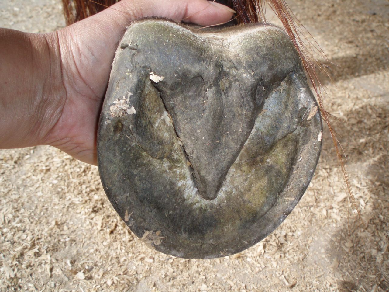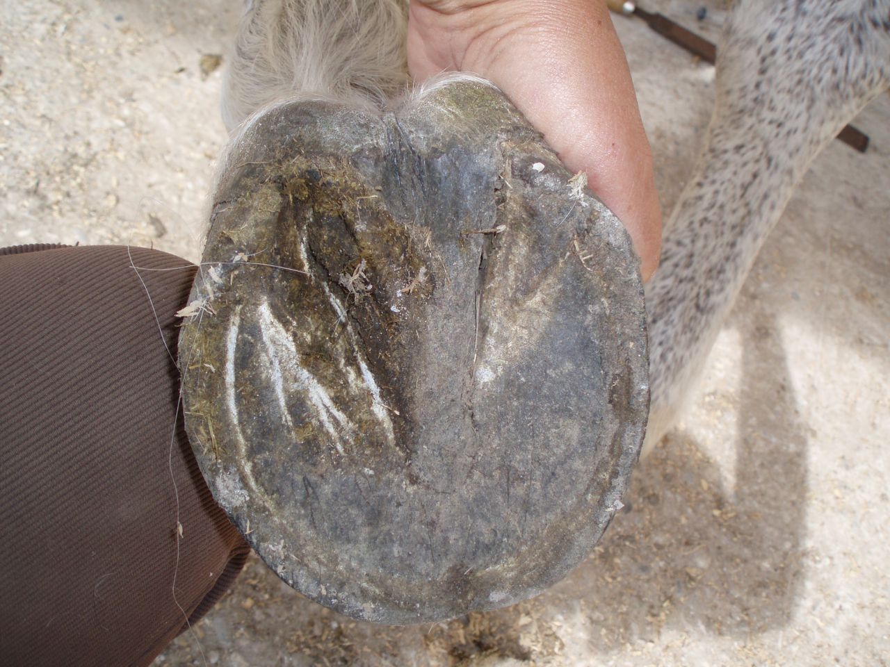 | Dire merci | Sans vouloir incriminer le maréchal,car cette jument a peut être un problème d'aplomb(toujours difficile à gérer sur un pied nu).Il est quand même évident ,même sur une photo pas tout à fait au carré que les barres n'ont pas du tout été travaillées et que la fourchette n'a pas sa fonctionnalité normale!Et la fourchette sur un pied nu,c'est quand même primordial ! |