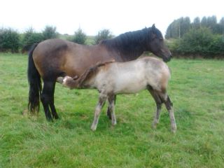 Dire merci | C est un PRE. Il faisait 1.25m à 4mois, bien costaud, et les parents font environ 1m65. Mon véto dit que justement les nourritures pour poulains sont trop protéinées. |