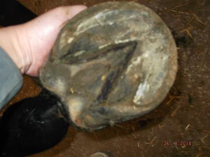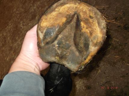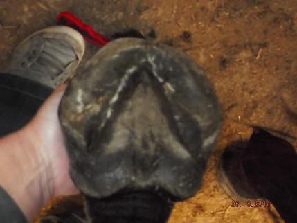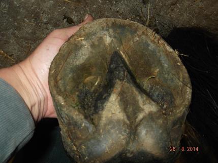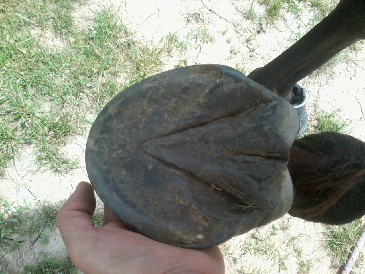 | Dire merci | Kératex c'est un durcisseur qu'ils vendent chez Sosabot. Il n'est vendu que là bas je crois. Il parait que c'est vraiment bien. carococo centré c'est que l'aplomb de la jambe tombe au milieu du pied, c'est ce que le pareur qui est venu m'a dit qu'il fallait rechercher. Voici donc les pieds paré depuis deux jours, trois semaines après déferrage pour les postérieurs, deux semaines après déferrage pour les antérieurs. Antérieur droit ![]() Antérieur gauche : ![]() Postérieur droit ![]() Postérieur gauche : ![]() On voit qu'il n'a pas touché à la sole quasiment, il a un peu graté juste parce que moi aussi il y avait une double sole, il dit que ça fait nécroser celle d'en dessous et que c'est du au ferrage à chaud. Il a laissé du talon, et a juste taillé la fourchette pour avoir des lacunes, mais pas du tout touché à la surface. |