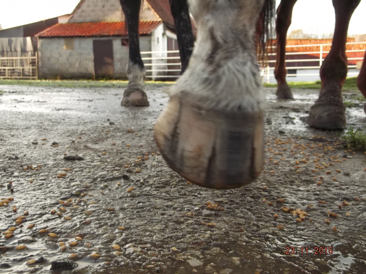 | Dire merci | Bonjour, alors les photos c'est après parage, je crois sincèrement que le très grand angle de mon téléphone donne une piètre idée du parage ( en particulier : les barres sont planes vraiment, on le sent bien en passant le doigt dessus ). Pour les "cratères" dus aux cailloux, c'était pire il y a 15 jours....Je cure 4 fois par semaine, pour éviter que des pierres ne se collent dessous pourtant, ça l'a fait un peu là je pense que ça va mieux. Il a eu ça alors qu'il travaille 90 % en carrière le reste ballade en main pour durcir justement... ![]() Depuis, il a été sortie une fois complètement pieds nus sans sensibilité particulière ( il cherche quand même le coté, mais il avance, quoi). Je pense que la sole s'est ramollie à l'herbe humide. Ici on a des endroits, dont un à la sortie de la pension, ou les cailloux sont très pénalisants. J'ai décidé de le mettre dans un champs plus loin que la pension pour jusque mars, ça me fera encore perdre plus de temps pour aller le chercher et le ramener, mais il ne sera pas comme l'an dernier dans la boue tout le temps ( douceur angevine + terrain glaiseux...), j'espère comme ça garder le bénéfice du déferrage sans abcès ou autres ennuis. Et je continue a protéger les antérieurs en extérieur sauf exception pour voir ou j'en suis... Le pareur est très optimiste, il pense qu'au printemps son pied sera vraiment transformé... Et Tricot, il en est où de ses seimes ? |