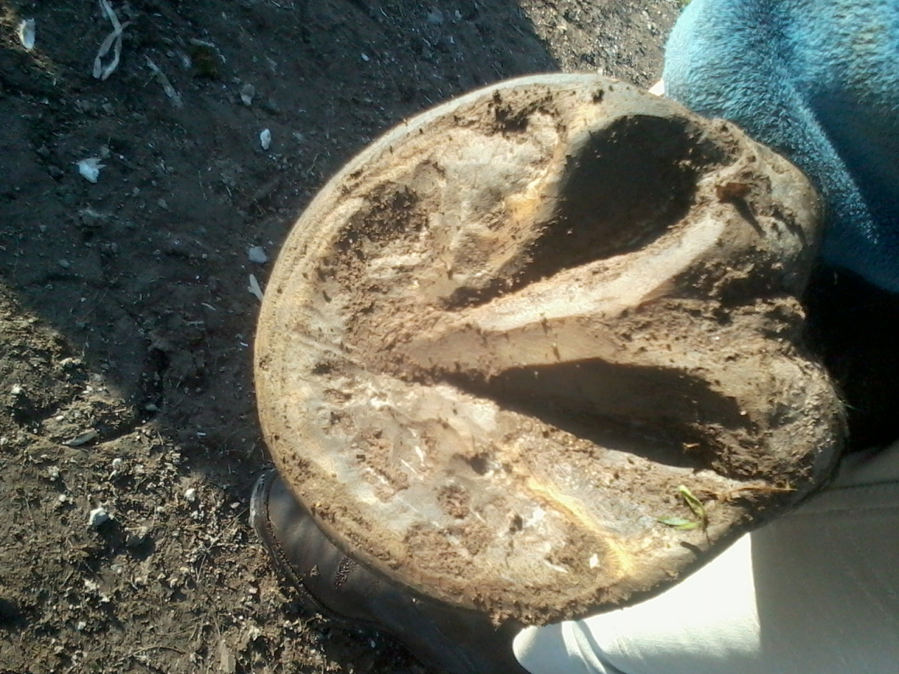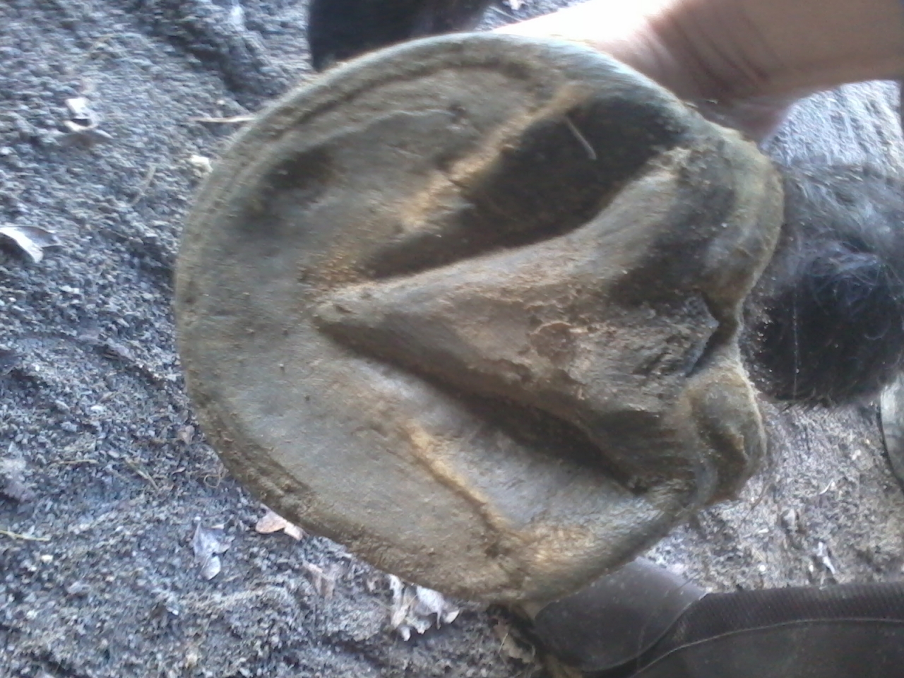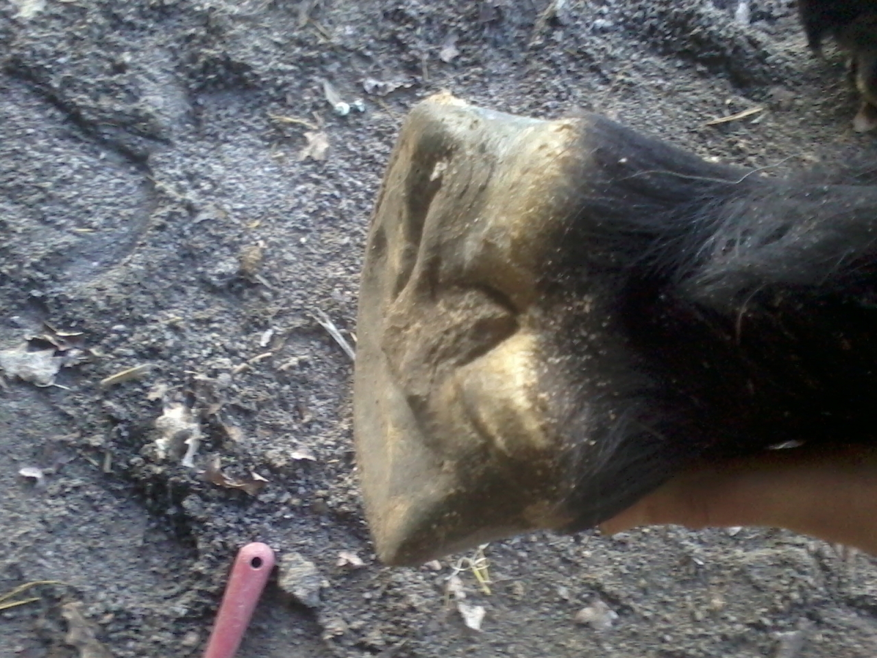 | Dire merci | Oc je pense que tu parles de la partie ext ( en haut de la photo) ? Quand on passe le doigt dessus ça dépasse pas de la sole, par contre il laisse encore du talon ( et pour ce pied il est reculé plus de ce coté). Ou c'est moi qui ne nomme pas bien les parties du sabot. La barre pour moi ( et je peux me tromper ) c'est ce qui est / était en jaune/ ocre sur l'image, et le talon est noir, le retour en fait, mais peut être que ça fait déjà partie des barres, auquel cas, oui il en reste... En tout cas merci de vos coups d'oeil...Ca me fait réfléchir |
