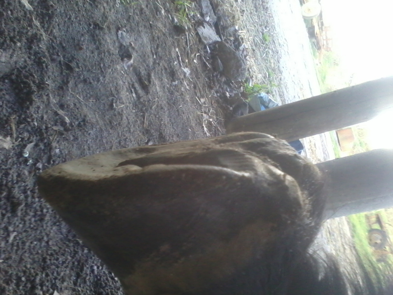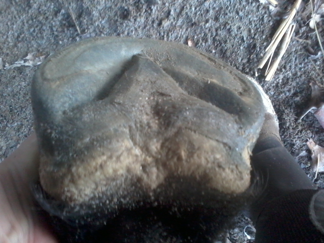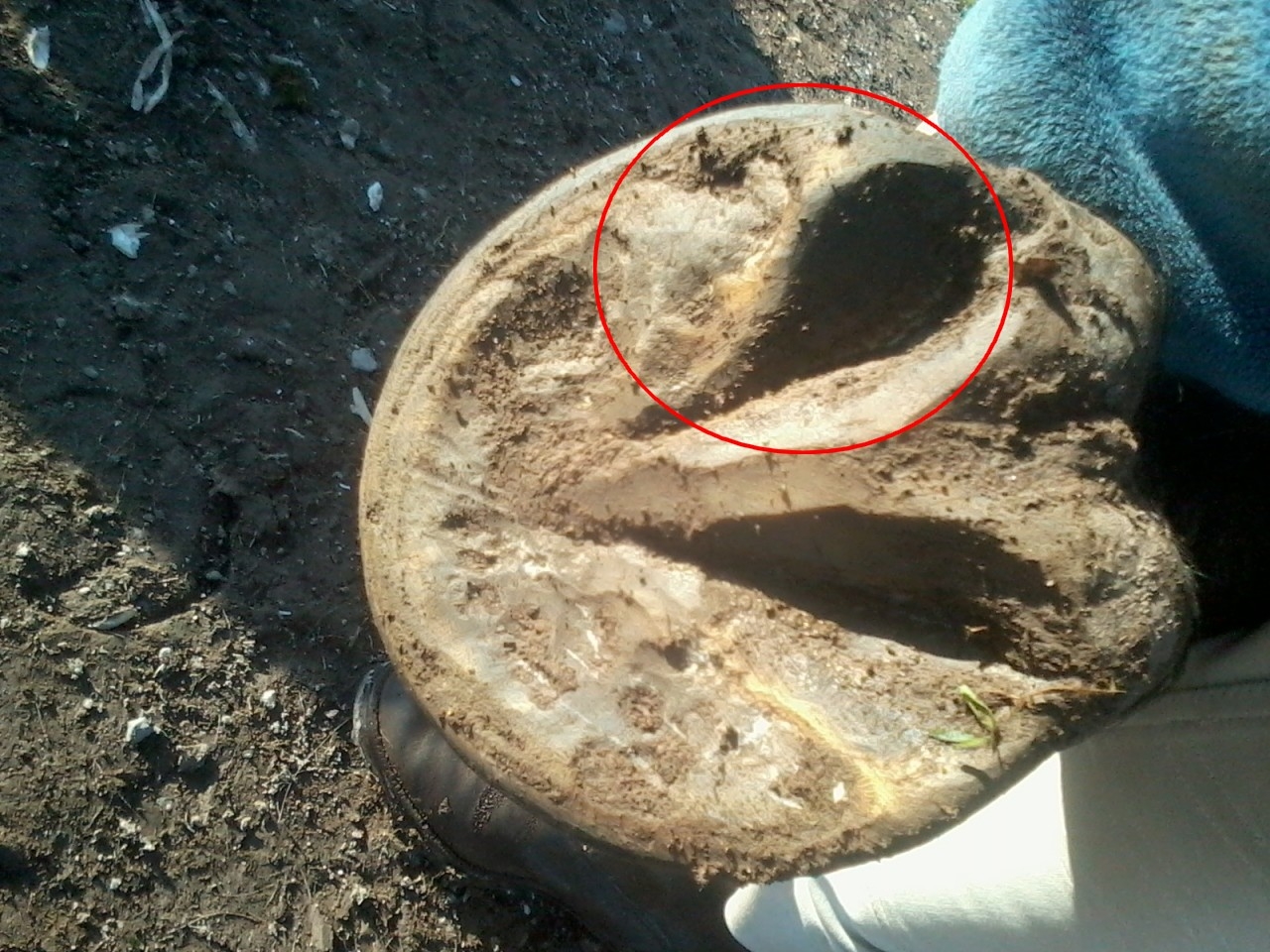 | Dire merci | Oc je pense que tu parles de la partie ext ( en haut de la photo) ? Quand on passe le doigt dessus ça dépasse pas de la sole, par contre il laisse encore du talon ( et pour ce pied il est reculé plus de ce coté). Ou c'est moi qui ne nomme pas bien les parties du sabot. La barre pour moi ( et je peux me tromper ) c'est ce qui est / était en jaune/ ocre sur l'image, et le talon est noir, le retour en fait, mais peut être que ça fait déjà partie des barres, auquel cas, oui il en reste... En tout cas merci de vos coups d'oeil...Ca me fait réfléchir |