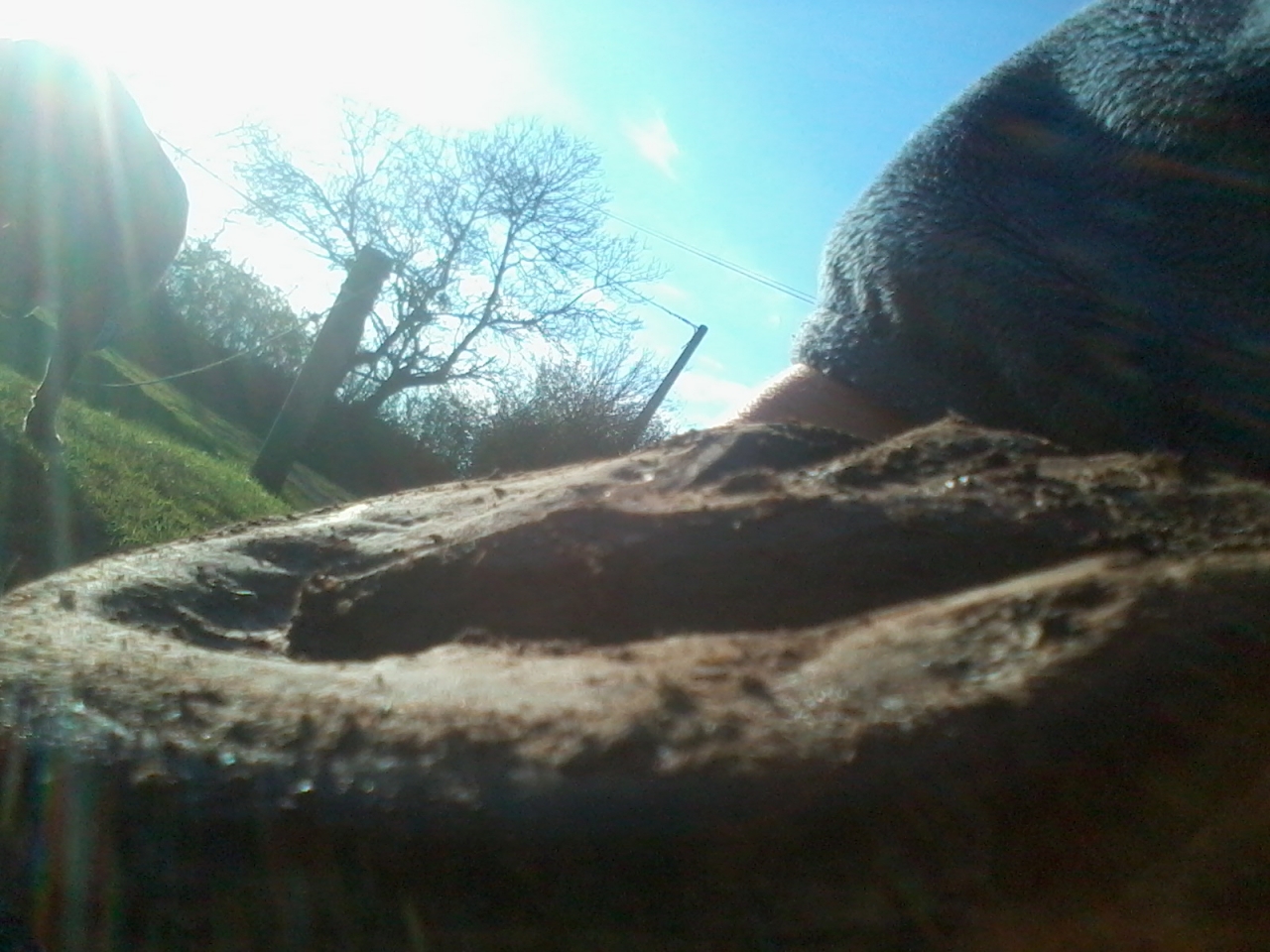 | Dire merci | Alors les photos... Toujours l'ant droit : ![]() ![]() ![]() ![]() Je n'aime pas cette ligne entre le sabot et les glomes, je traite au vinaigre pour éviter une pourriture. Quand on est arrivé c'était légèrement sensible, ça le semble moins. Et postérieur gauche : /207113.jpg" alt="" /> je trouve toujours déséquilibré..Le pareur m'a dit que le pied devrait évoluer de manière sensible ce printemps. La personne de la nouvelle pension dit qu'il n'a pas du tout de pied, qu'il faudrait le enferrer... bon en même temps elle en a un pied nus qu'elle fait parer deux fois l'an..Moi tant qu'il marche bien et n'a pas mal, je suis satisfaite. Même si en extérieur je mets les sandales lorsque je le monte. Je continue en parallèle les sorties en main sur bitume. |
