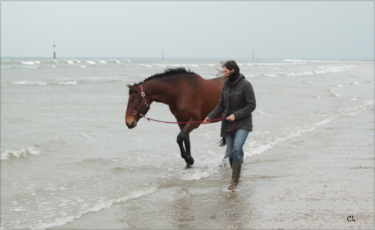 | Dire merci | Une amie organise normalement une sortie plage avec les chevaux J'aimerai être des leurs, non sans une certaines appréhension . Ni l'un ni l'autre de les deux monstres n'a jamais vu la mer. J'aimerai avoir vos récits, vos expériences de première sortie pour vous et votre Loulou à la plage ! J'ai ma jeune de 4ans, je ne me fais pas trop de soucis, mais j'aimerai pouvoir emmener mon gros fjord qui est quelque peu.......imprévisible, soit ça peut se passer super bien, soit il risque d'avoir une touquette et d'avoir peur de son ombre La mer, est ce si impressionnant vu de l'œil d'un cheval ? |