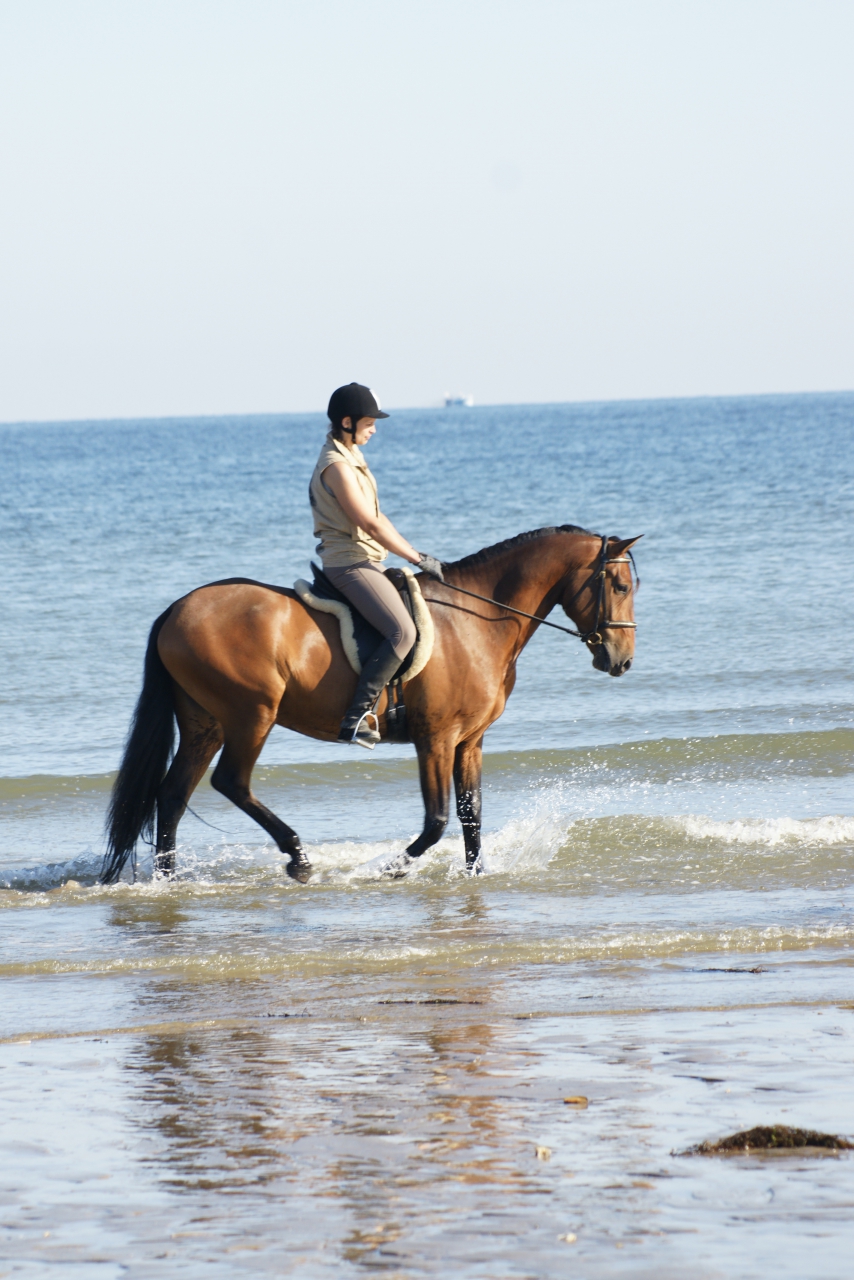 | Dire merci | J'y suis allée l'an dernier avec ma jument en compagnie d'une dizaine d'autres chevaux qui n'avaient jamais vu ça non plus..Et pratiquement tous ont été étonnamment calmes ! Certains se sont pris au jeu du grand galop dans cet espace infini, avec un terrain si agréable, mais ils sont tous restés gérables. La mienne et d'autres ont accepté de rester dans un galop tranquille. Tous les chevaux ont fini par accepter d'aller dans les vagues (pas grosses, heureusement), la mienne s'est bien amusée à taper dedans. Bref, c'était bien plus facile que je ne le pensais. |