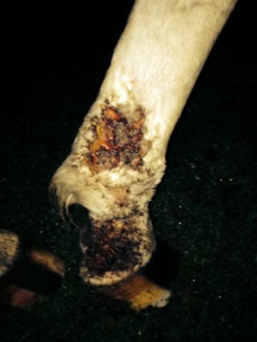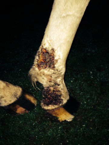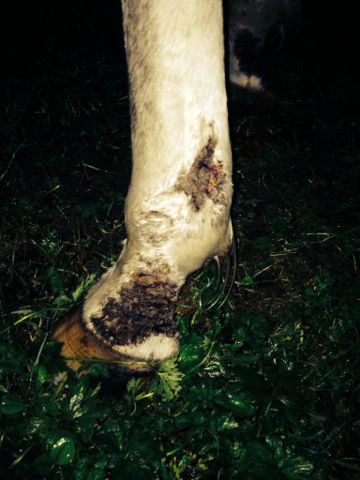 | Dire merci | Ouh c'est pas joli ça dis-donc! Le proprio nettoie régulièrement? Ca me fait penser à une gale de boue avec surinfection... Après difficile à dire sans savoir le mode de vie du cheval, l'évolution (début des lésions? Temps écoulé? Soins appliqués depuis?) A priori, si uniquement sur les membres, ça ne ressemble pas à la teigne et me semble trop "violent" niveau lésions pour une gale normale, je ne pense donc pas à une maladie contagieuse, mais clairement ça a bien besoin d'être nettoyé. |