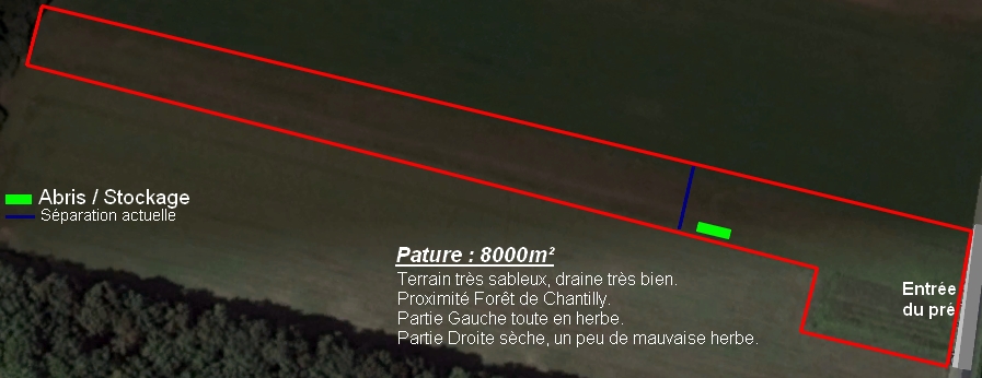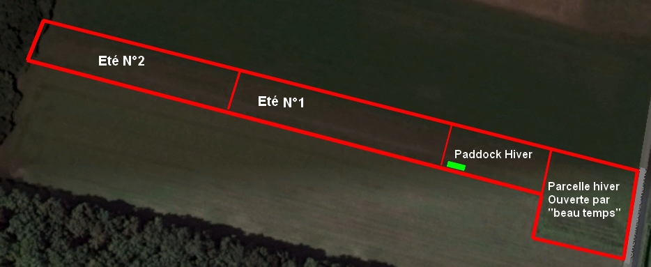 | Dire merci | J'ai 12000 m2 pour 3 poneys donc je pense que c'est un peu comme toi . Donc je vais diviser le pré en 3 . Une partie avec eau qui sera dispo tout l'hiver . Et 2 autres parties que je ferme début novembre . Que je rouvrirai en janvier / février et sue je ré fermerai en mars pour laisser pousser l'herbe . Ensuite on alternera sur les 2 parcelles avec la 3eme toujours ouverte . Et si je l'espère j'arrive à récupérer le pré que je convoite en plus . Je pourrai faire 2 parcelles de plus |