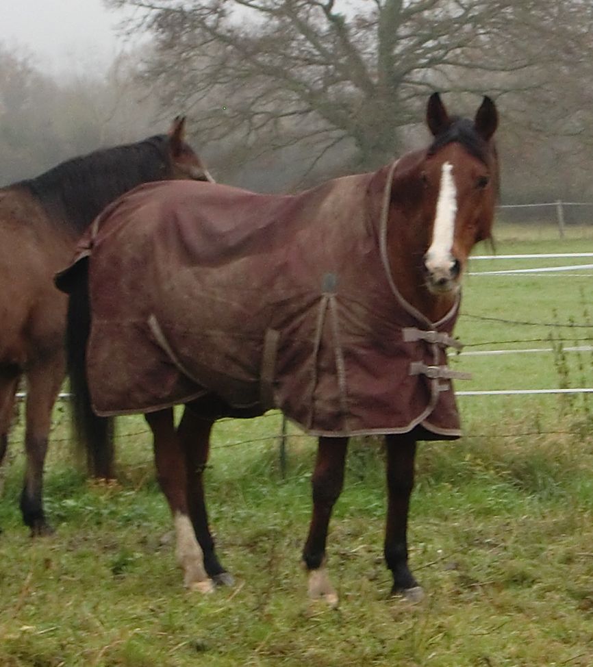 | Dire merci | Moi j avais une equitheme tyrex 1200deniers avec high neck (mais je l avais prise sans doublures). Elle existe en 100g... J'ai adoré! Elle ne bougeait pas, bien imper et solide (malgres les passages contre les barbelés et ronces),,, |