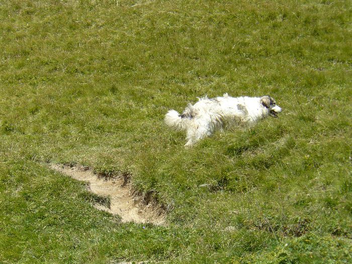 | Dire merci | En Suisse, les sentiers de randonnée alpine passent par des pâturages dont les troupeaux sont gardés par des patous. en France aussi , bien sur il est préferable de passer au large d'un troupeau pour ne pas énerver le Patou , meme s'il y en a des gentils, ce Patou est la pour protéger le troupeau et pourtant il est venu me voir sans intention belliqueuse. ![]() ![]() ![]() Et la pollution des terrains si l'on rassemble les troupeaux pour les parquets, avec la destruction de la flore fragile des montagnes... la montagne est grande , et j'ai remarqué que les parc fait pour la nuit sont installé dans des zones pierreuses je pense que c'est dans le but de ne pas trop abimer . |