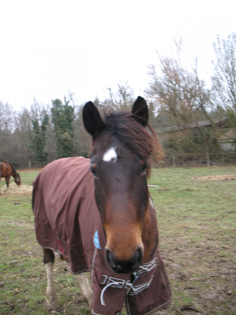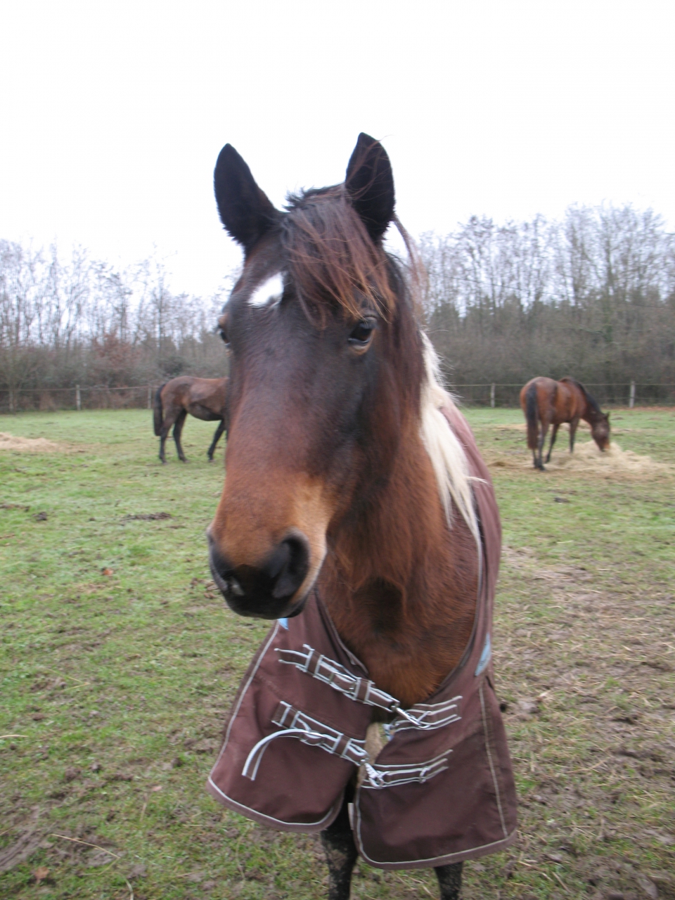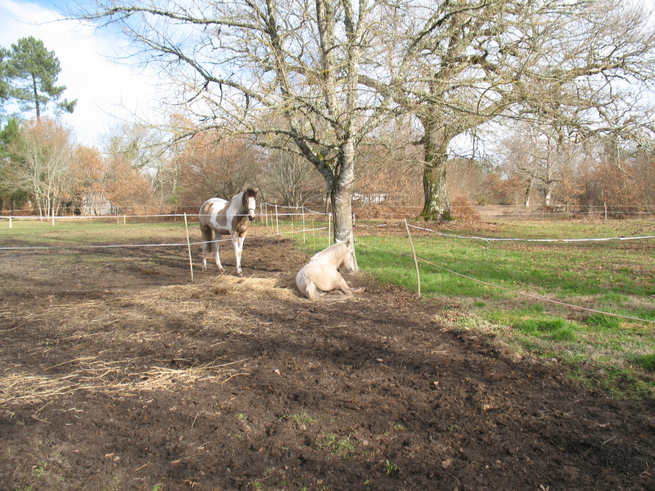 | Dire merci | Alors,...c 'est qui qui a mis ses chevaux dans la même prairie pendant 1h30, hein ?? C 'est bibi. Bon, il y a eu quelques regards de psychopathe, de jolies galopades, mais c 'est là que la vraie relation intervient. Quelques sifflements de ma part, une voix douce et pschitt adieu mister Hide, bonjour Auguy. Tant l 'un que l 'autre me surveillaient du coin de l 'oeil afin d 'être rassurés. Voilà quoi, je suis in love et eux aussi. Ah oui Lilou, j 'aurai mon sac n 'orange. ![]() |