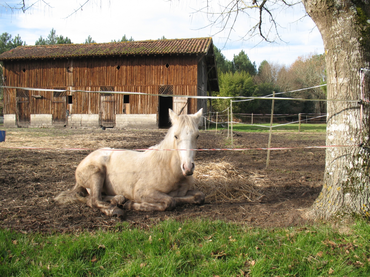 | Dire merci | Bonjour tous le monde. Pour ceux qui ont suivi nos aventures, j 'ai flashé sur Esmérada, poupou de l 'élevage de Lilou. Elle nous a rejoint voilà bientôt deux mois,et rien ne s 'est passé comme prévu. Bin oui, mon cher Auguy, quatre ans, seul depuis deux ans, l 'a attaquée avec virulence, et ce, à trois reprises, à plusieurs jours d 'intervalle. Maintenant, ils se font des bisous avec le fil de cloture entre eux. Ils finiront copains, mais après réflexion, je suis partie en quête d'une nounou plus sympa. Et voilà, samedi visite à Zorte Berria, pour Victoire, ponette de six ans, survivor, qui m 'a tappée dans l 'oeil. |