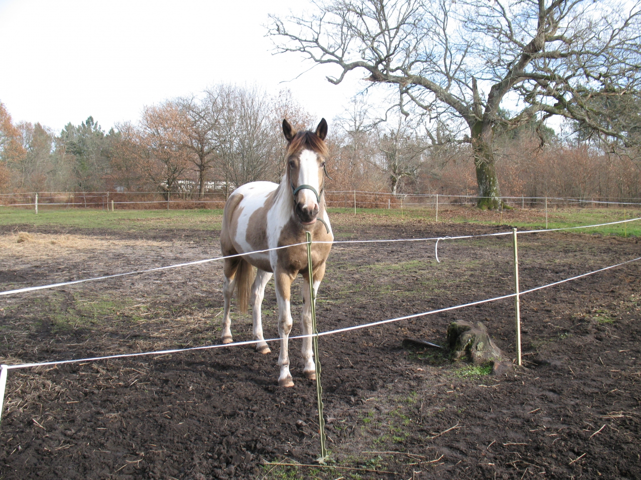 'a attaquée avec virulence, et ce, à trois reprises, à plusieurs jours d 'intervalle. Maintenant, ils se font des bisous avec le fil de cloture entre eux. Ils finiront copains, mais après réflexion, je suis partie en quête d'une nounou plus sympa. Et voilà, samedi visite à Zorte Berria, pour Victoire, ponette de six ans, survivor, qui m 'a tappée dans l 'oeil.
