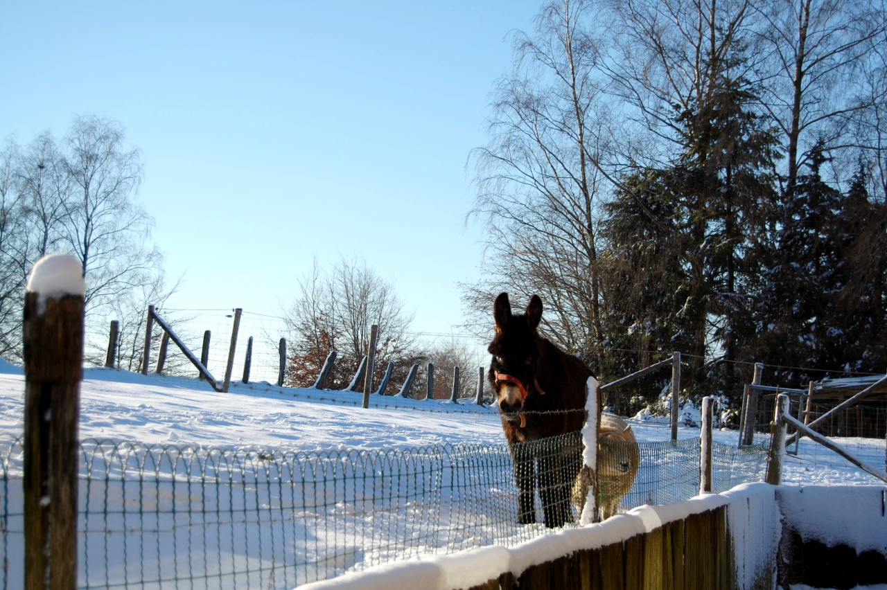 | Dire merci | On met depuis quelques années notre "jardin", qui est plutôt une petite prairie, à disposition de gens du village qui y mettent un âne et un mouton. D'habitude ils les reprennent l'hiver chez eux je pense qu'ils ont des étables ou quoi mais cette année ils sont toujours là. Je suis dans le fin fond des ardennes belges, il a bien neigé la semaine passée et depuis il gèle toutes les nuits donc ça ressemble plus à une grosse couche de glace de 15cm. Ils ont un abris donc je ne me tracassais pas trop mais ils ne leurs mettent rien à manger, j'ai vu un jours des traces de foin dans la neige mais depuis plus rien et les deux loulous commencent à me faire bien pitié et à part du vieux pain que je garde toujours pour ma jument je n'ai rien à leur mettre... Je vais dégeler le bac d'eau tout les jours mais même ça je n'aime pas, je ne voudrais pas qu'ils pensent que je m'occupe de leurs bêtes et le prenne mal... Je connais un peut les gens hein je ne sais pas trop quoi leur dire, le mec est un peut du genre à tout savoir, il a vu une fois le maréchal ferrant travailler quand ils ont récupéré l'âne et du coup il trouve que c'est pas bien compliqué et le pare lui-même, je sais pas si vous comprenez le genre de personne que c'est |