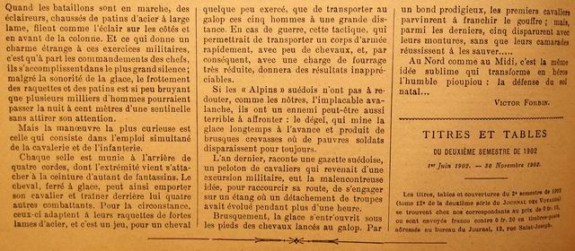 | Dire merci | ... qu'est né le ski joëring, en Suède. Voilà ses débuts, dénichés en feuilletant le "Journal des voyages et des aventures de terre et de mer" (deuxième semestre 1903), retouvé au grenier ! ![]() ![]() ![]() D'autres "surprises équestres", de cette époque, à partager si vous le souhaitez... |