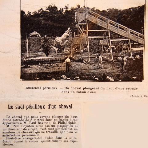 | Dire merci | Il y en a eu pas mal de chevaux plongeurs à une époque. Jusqu'à ce que l'on dénonce ce qui aboutissait bien sûr à des horreurs... |